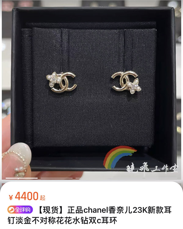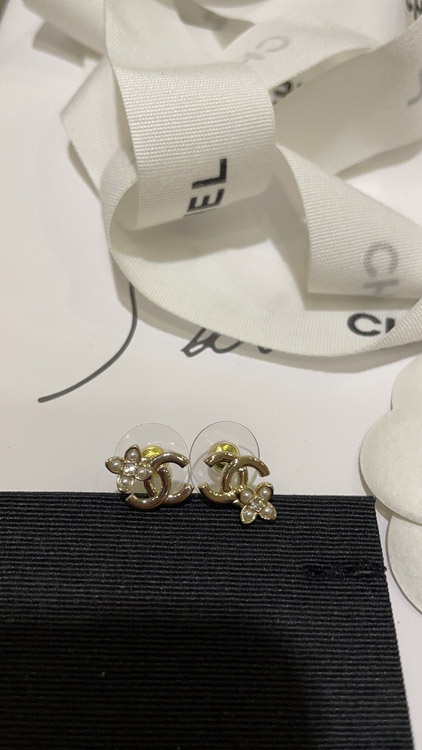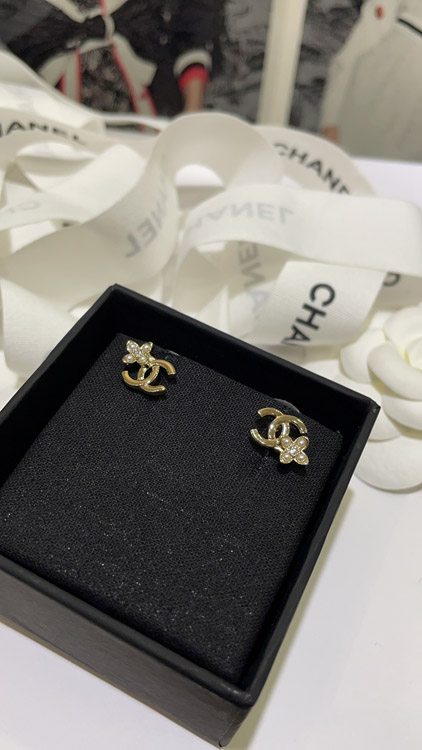 Home > Celine pearl rhinestone small flower gold double C earrings-3898