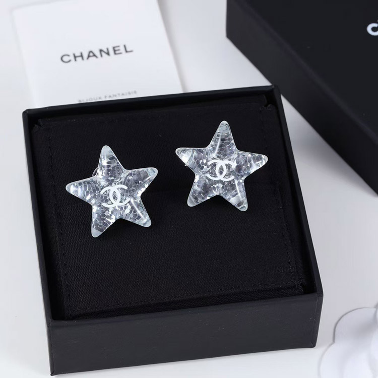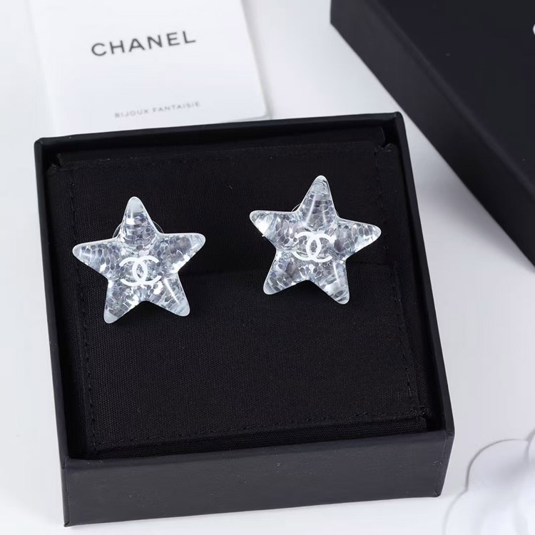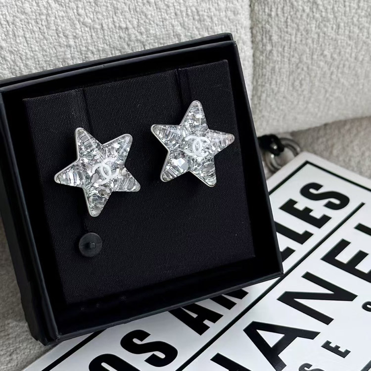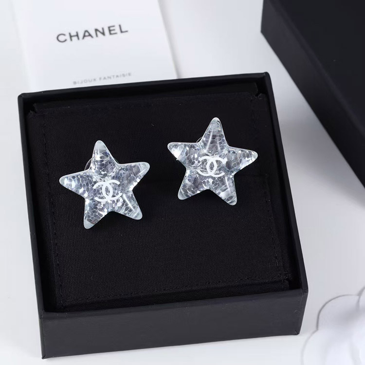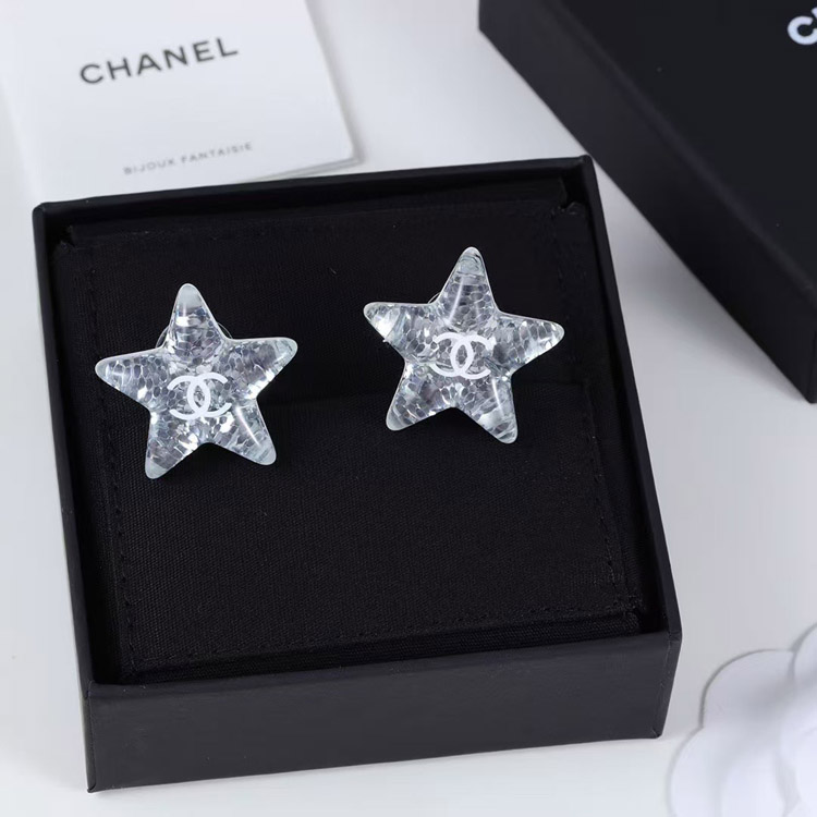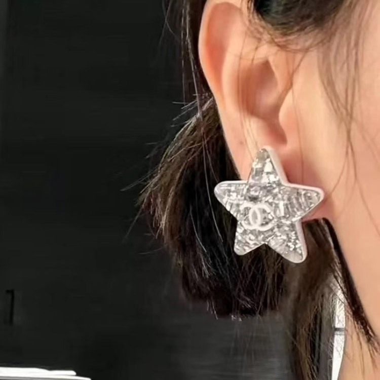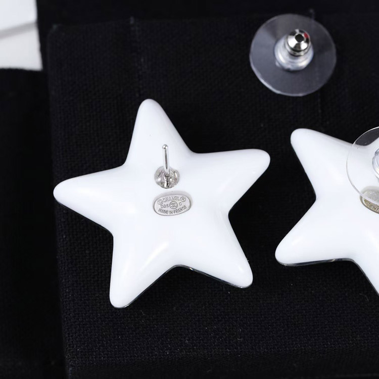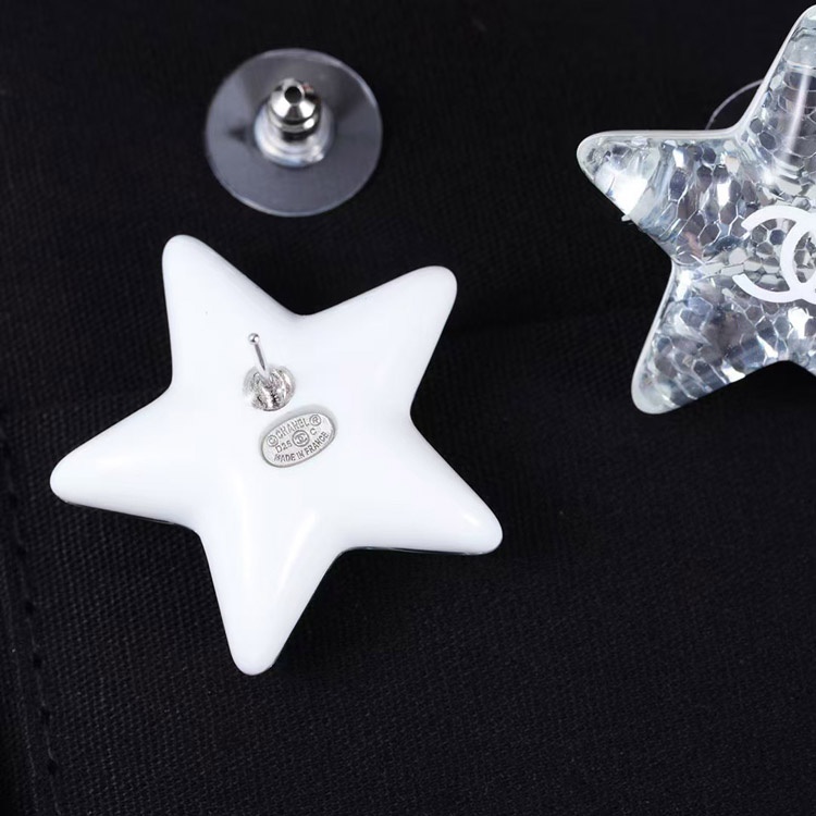 Chanel earrings white double c silver sequins acrylic star earrings-3744