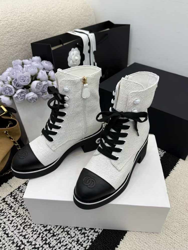 Chanel platform color-block lace-up ankle boots-5774