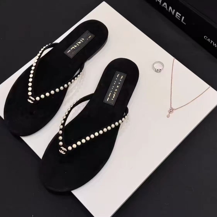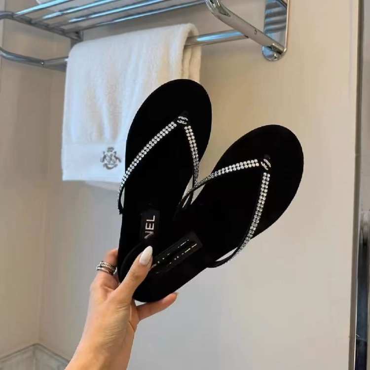 Home > Chanel rhinestone and pearl embellished velvet flat thong sandals-5697