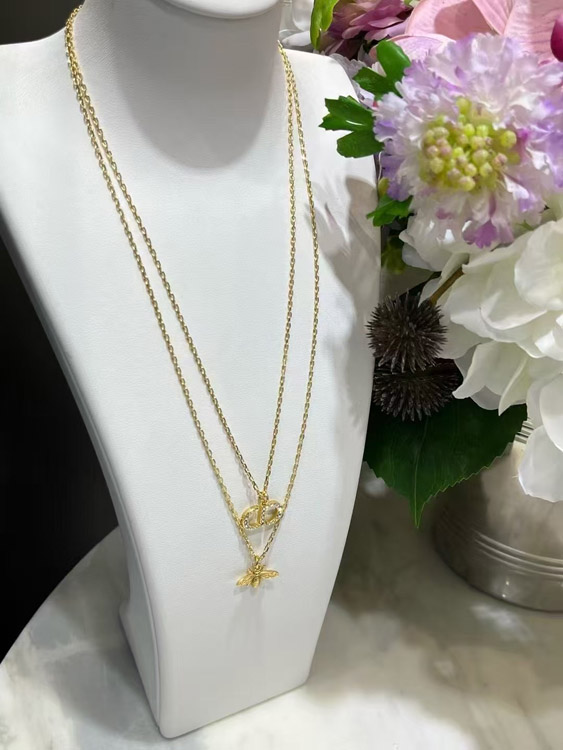 Dior gold diamond bee pendant double necklace-3706