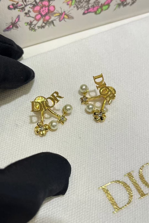 Dior gold star pearl double ball earrings-4017