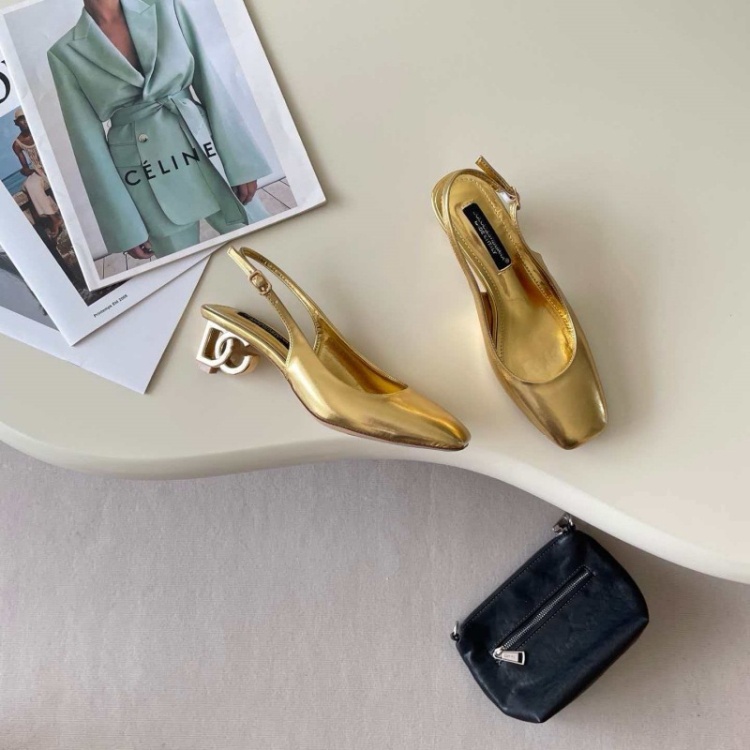 Home > Dolce & Gabbana DG new square-toe open-back metallic high heels-5721