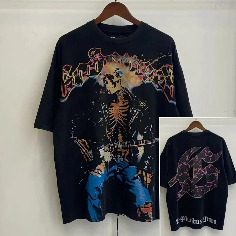 Home > Godspeed Skull Rock Band Washed Casual Loose Short Sleeve T-shirt-2758