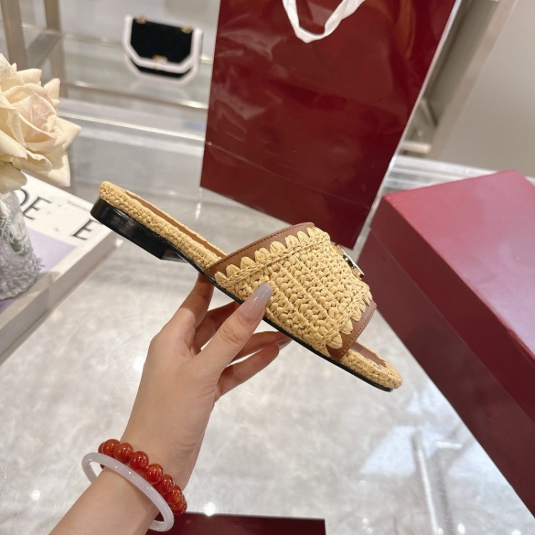 Home > Gucci new handmade woven slippers with metal buckle-5756