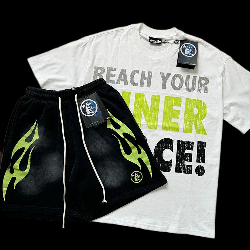 Hellstar printed loose short-sleeved shirt and shorts set-5185