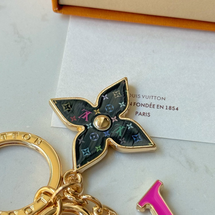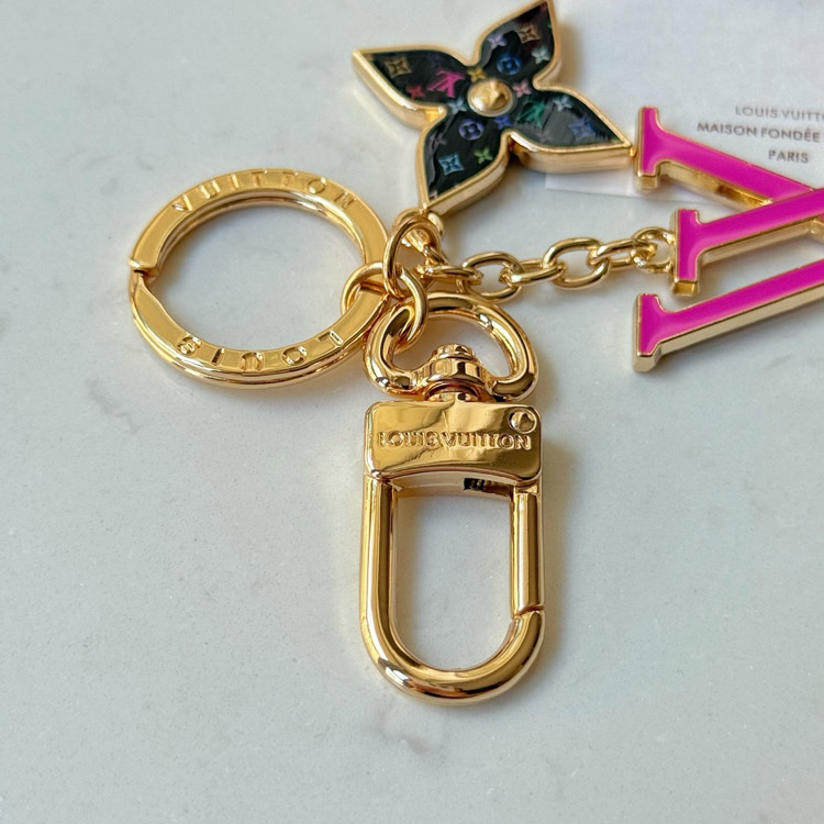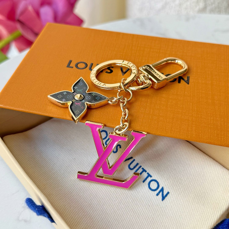 Home > Louis Vuitton LV black tricolor old flower pink letter keychain-3761