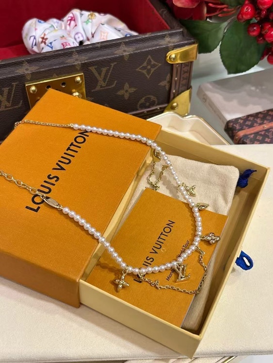 Louis Vuitton LV Gold Letters Old Flower Pearl Necklace-3721