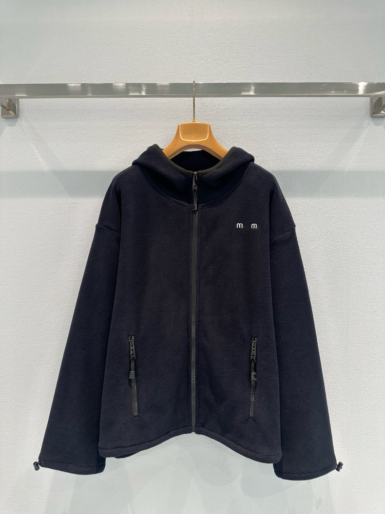 Miu Miu new collection set Embroidered logo fleece hooded zip-up jacket-5363