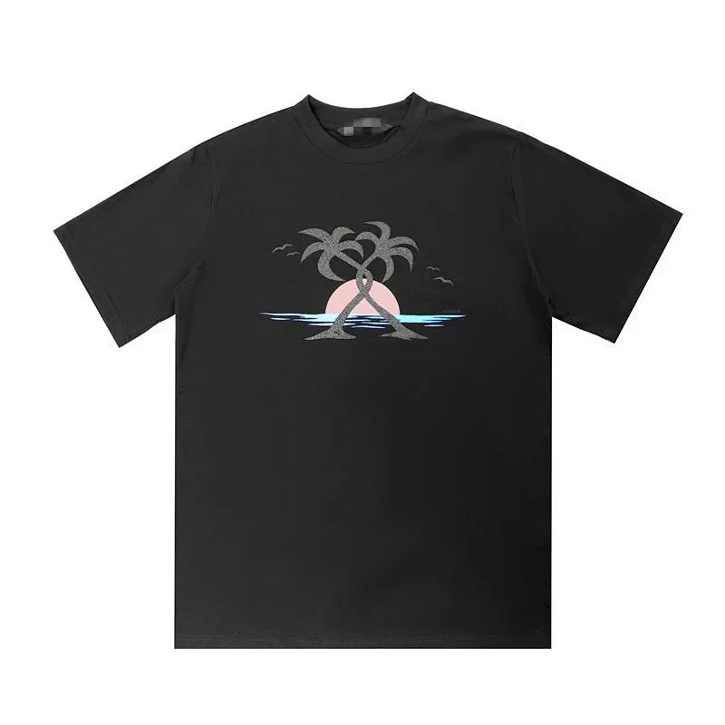 Palm Angels crew neck cotton short-sleeved T-shirt with palm tree print-5180