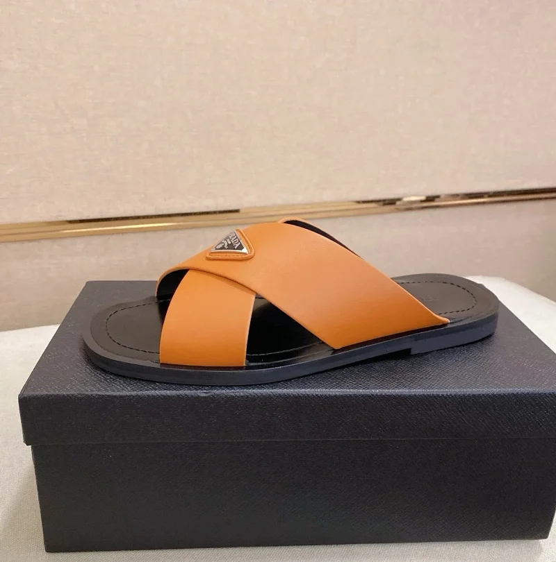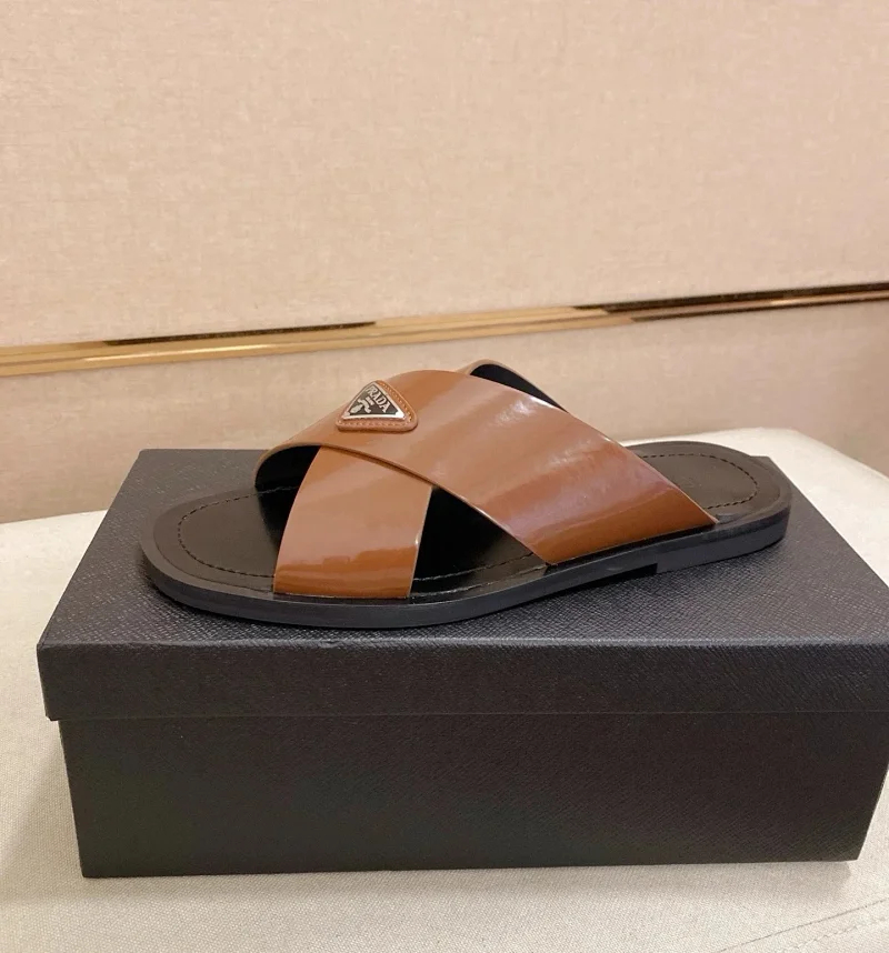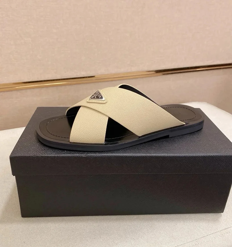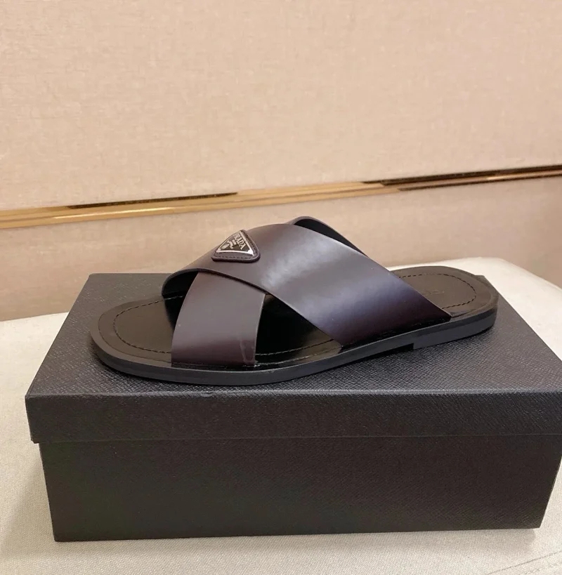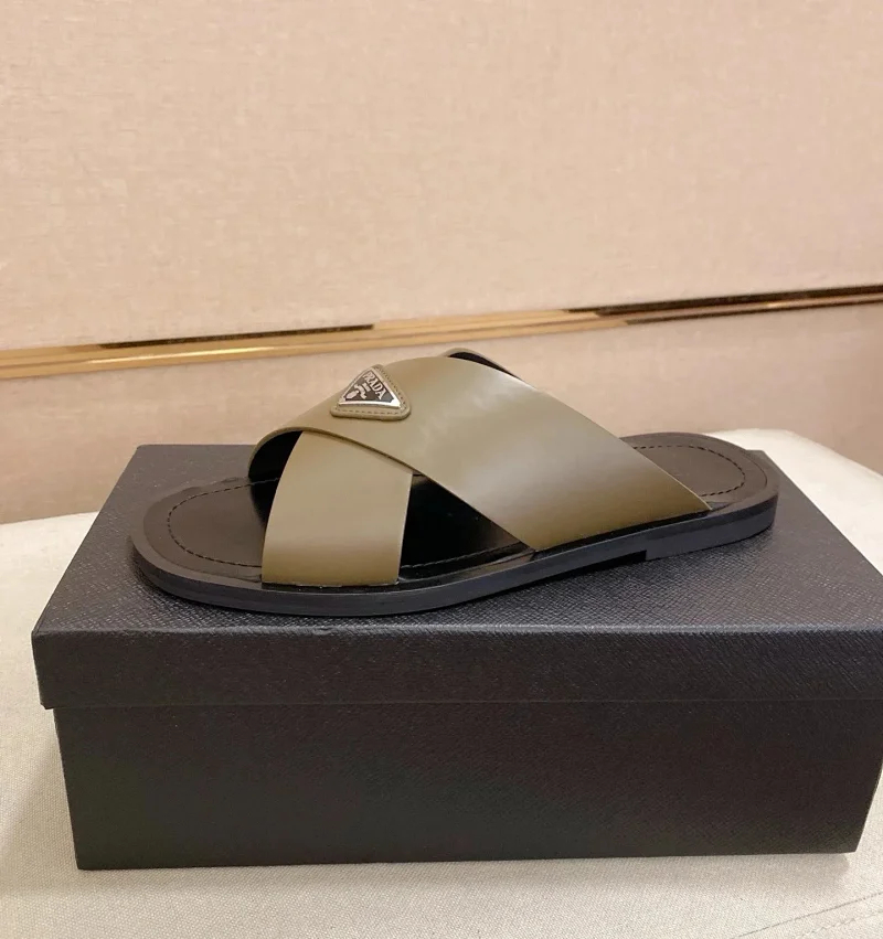 Prada Ultralight Breathable Leather Cross Slippers-5553