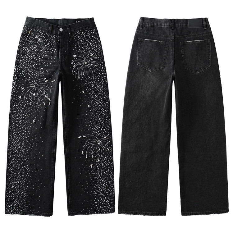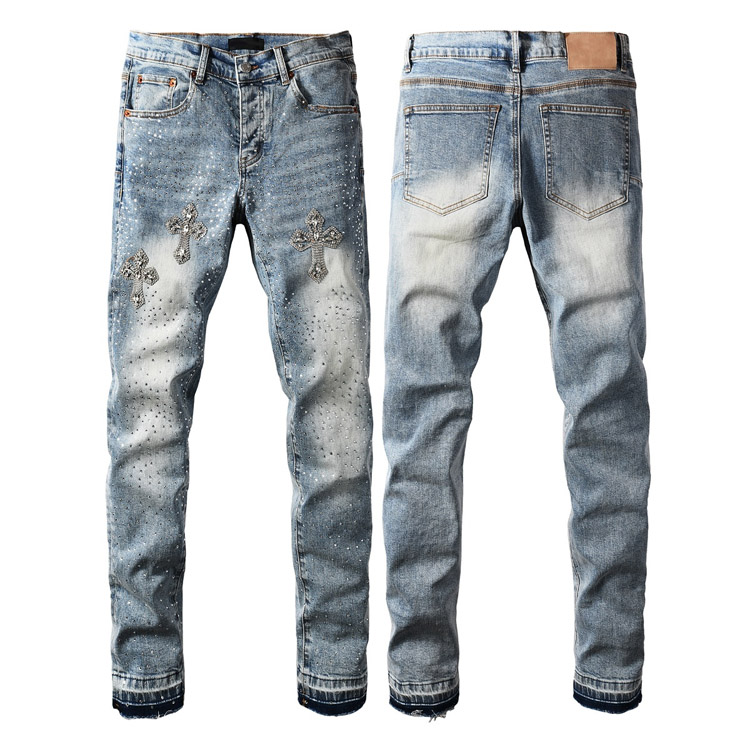 Purple Brand new diamond-studded slim-fit skinny jeans with wide legs-4247