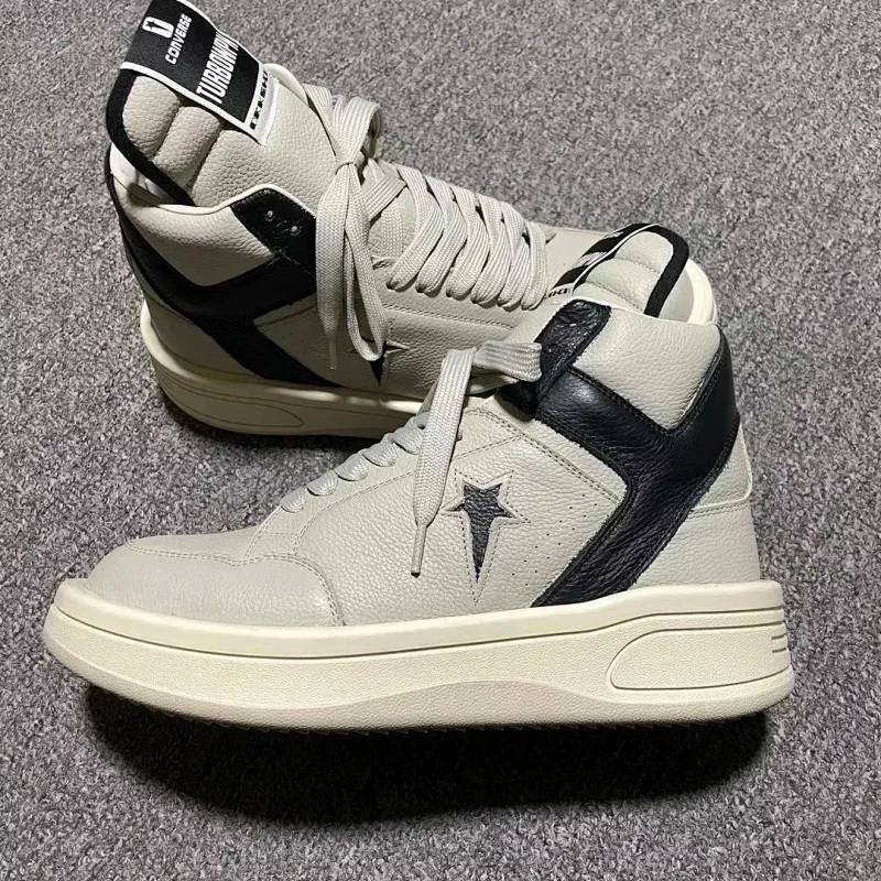 Home > RICK OWENS/RO Edfu leather semi-gloss finish high-top fashion sneakers-2945