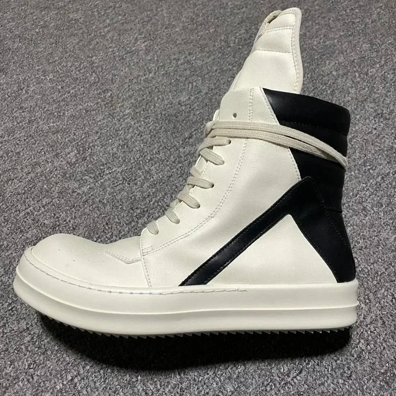 RICK OWENS/RO Edfu leather semi-gloss finish high-top fashion sneakers-2945