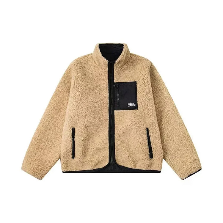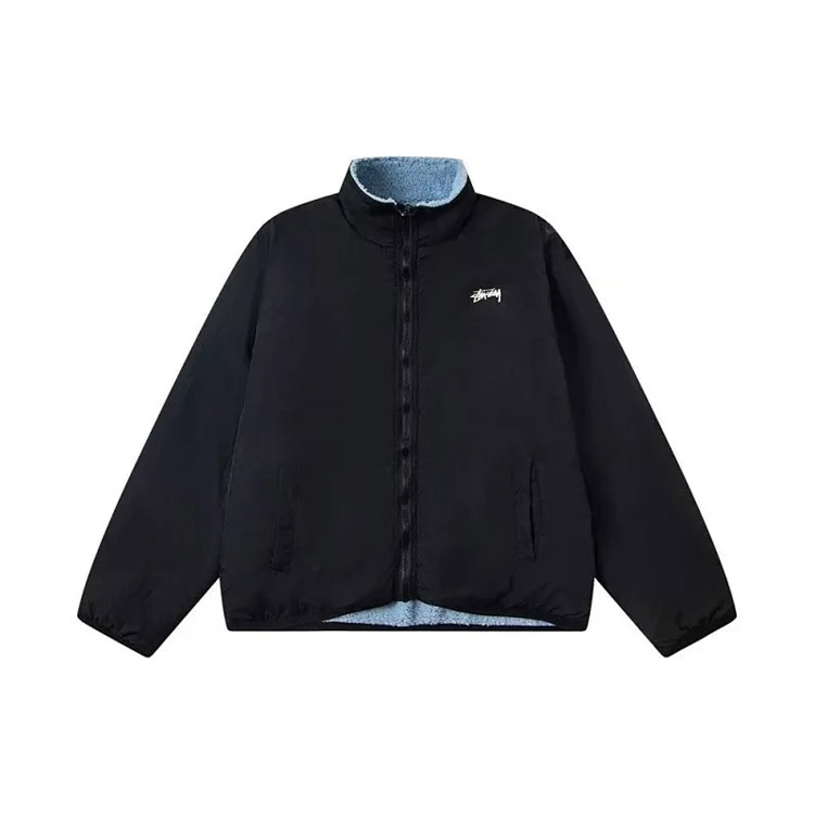 Stussy fleece double-sided zip-up collar warm jacket-4760