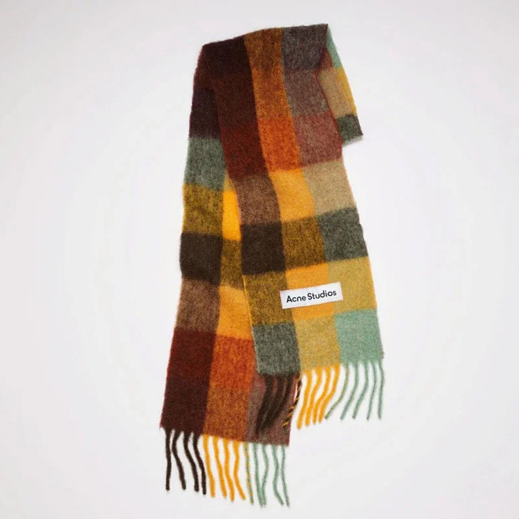 Home > ACNE rainbow plaid scarf with tassels and color-blocked AC shawl-4981