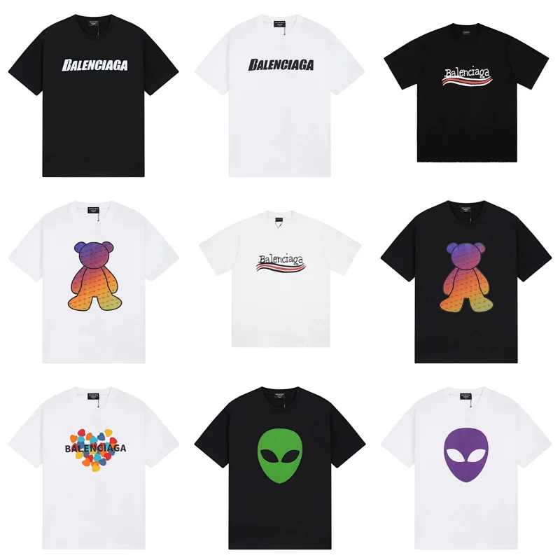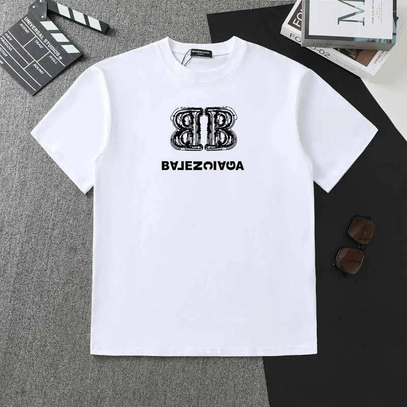 Balenciaga new double-layered fabric printed short-sleeved T-shirt-5177