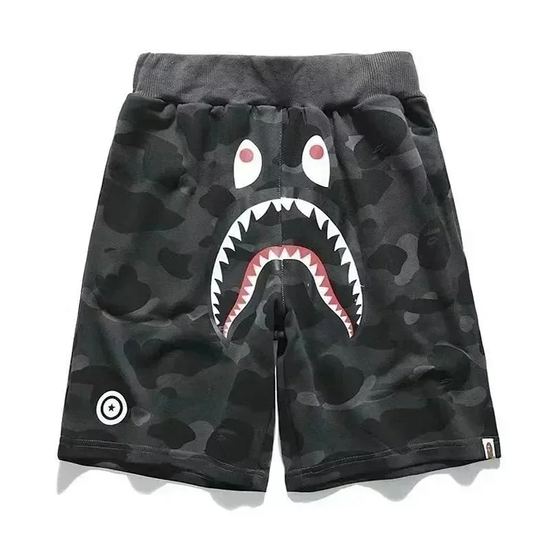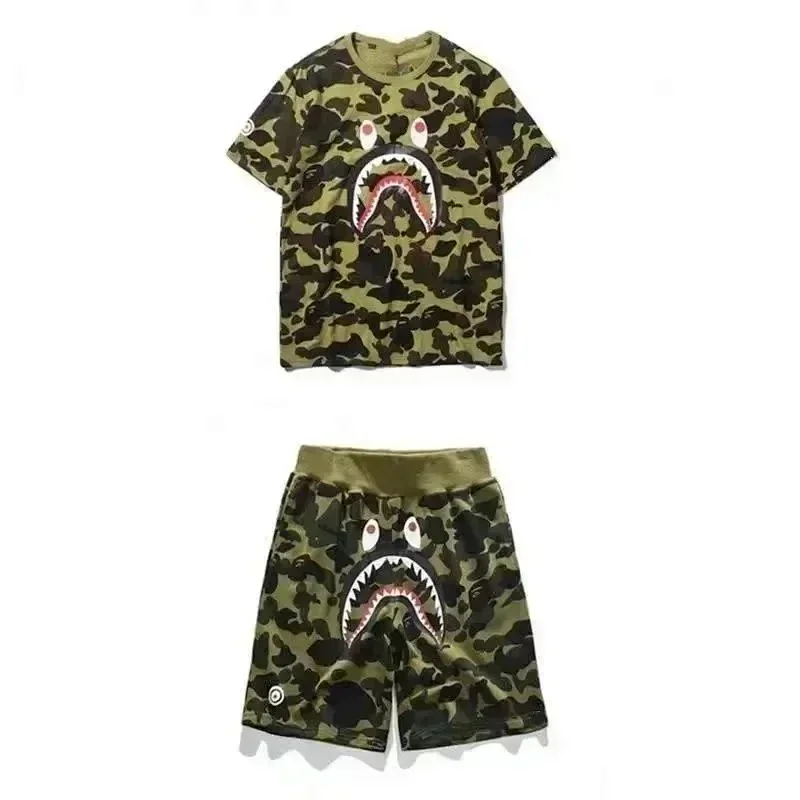 Bape shark zipper letter full print camouflage pattern short-sleeved T-shirt shorts set-2818