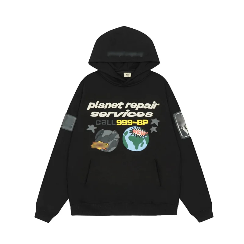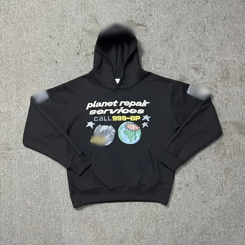 Broken Planet Letter Print Hoodie--4429