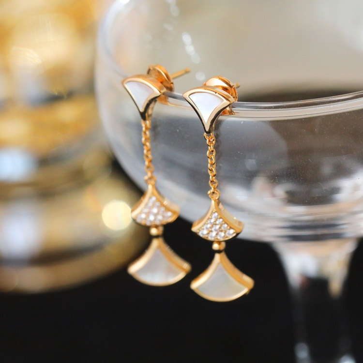 Home > Bulgari fan-shaped white mother-of-pearl diamond earrings black agate long earrings-3861