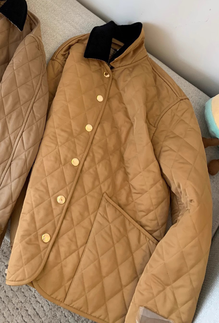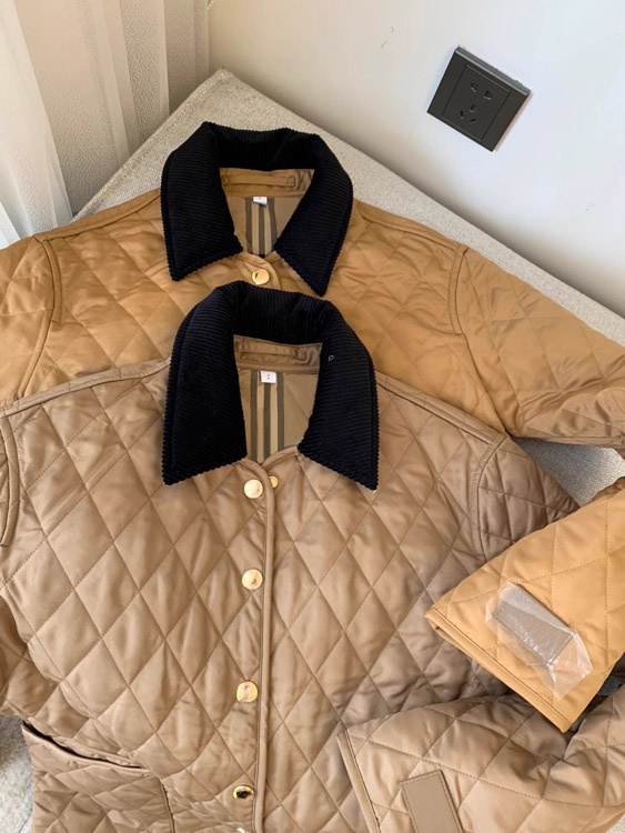 Burberry classic corduroy collar diamond quilted down jacket in golden cotton-5300