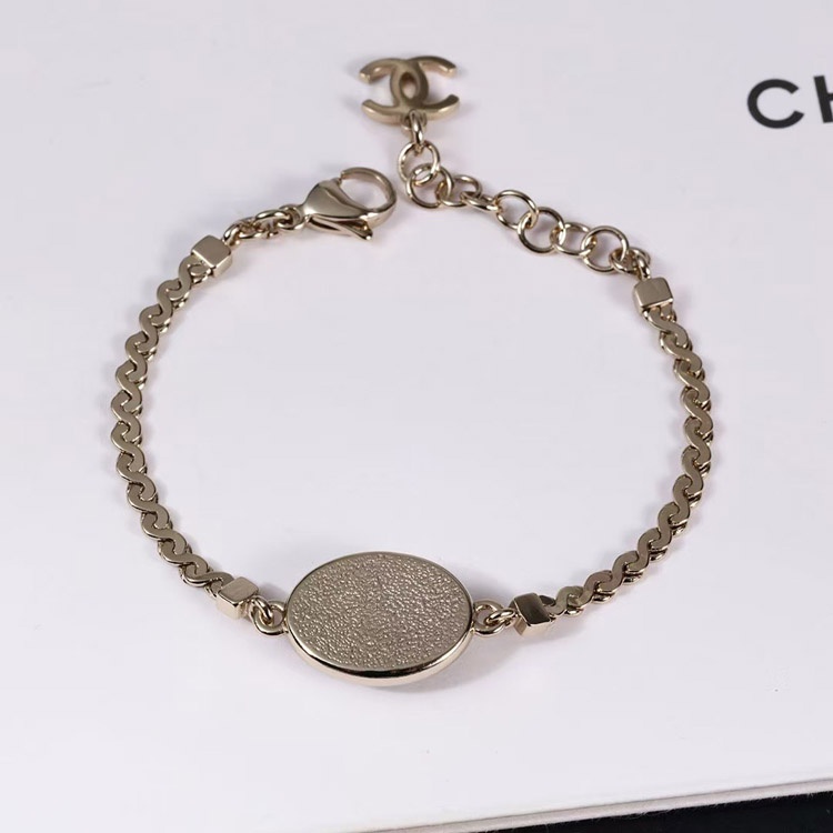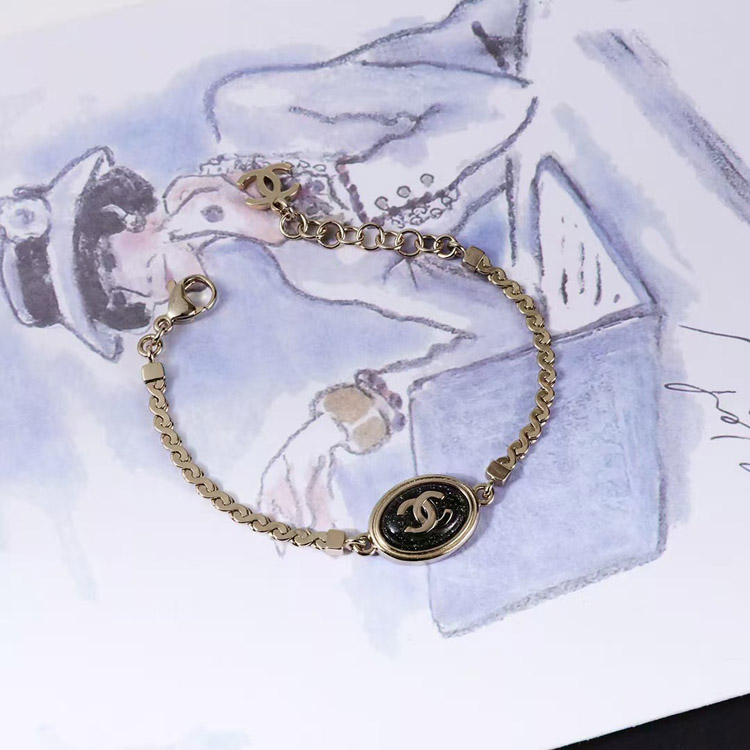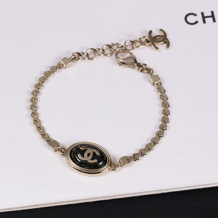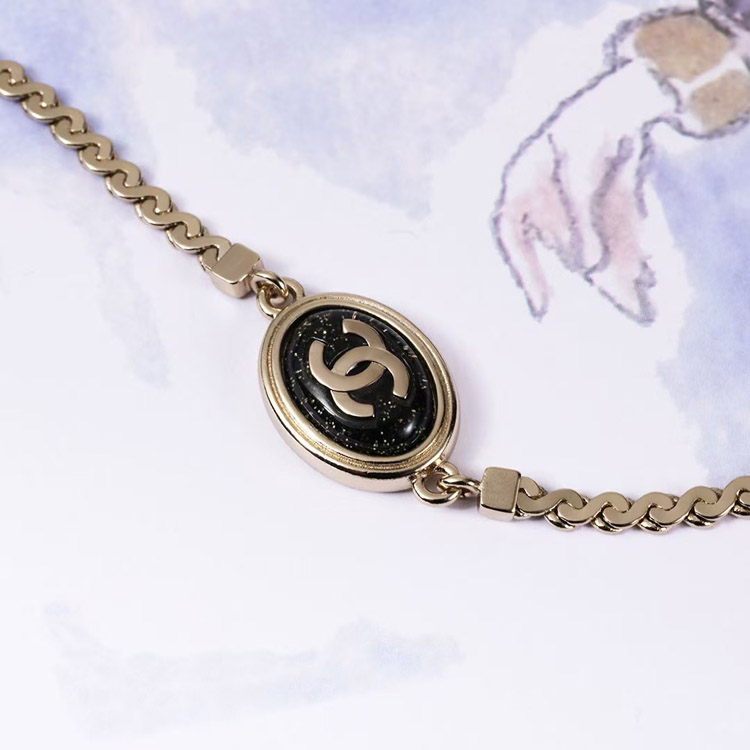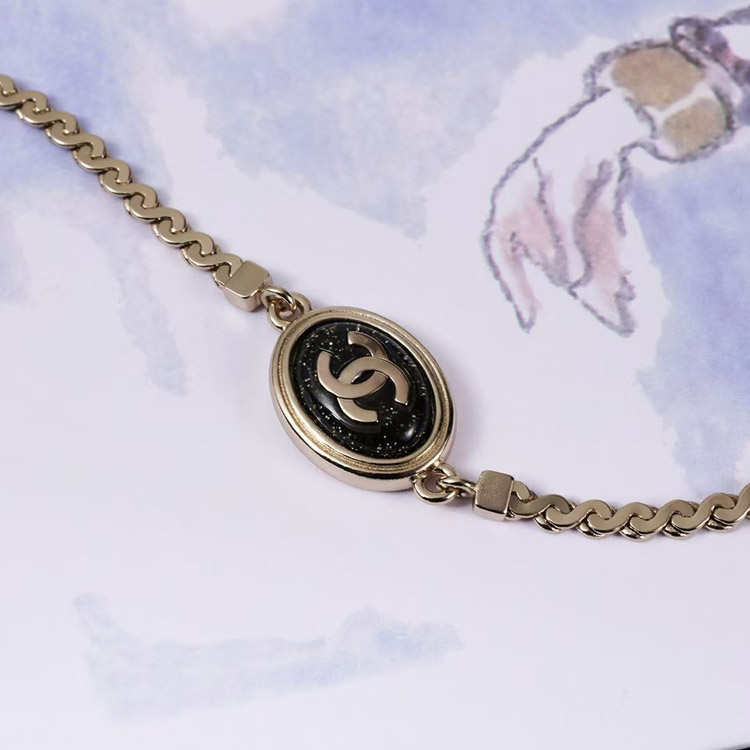 Chanel gold oval black fine flash double c letter snake bone bracelet-3740