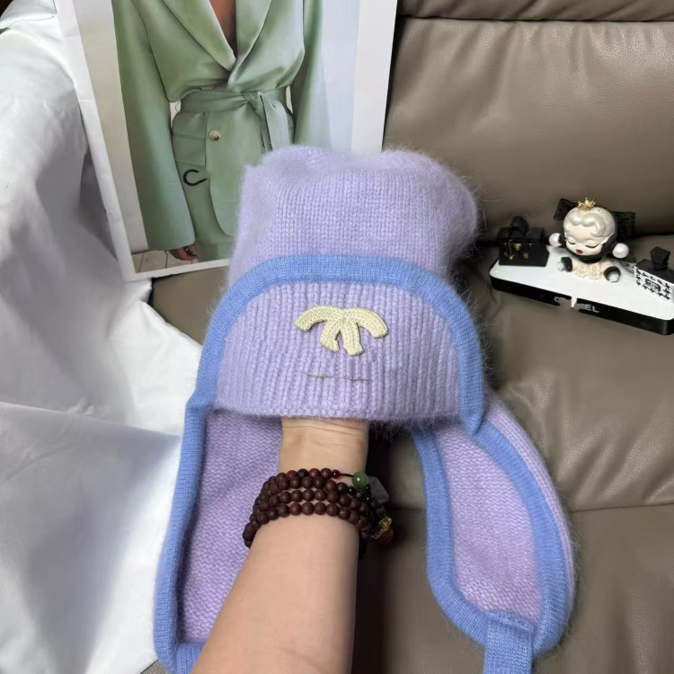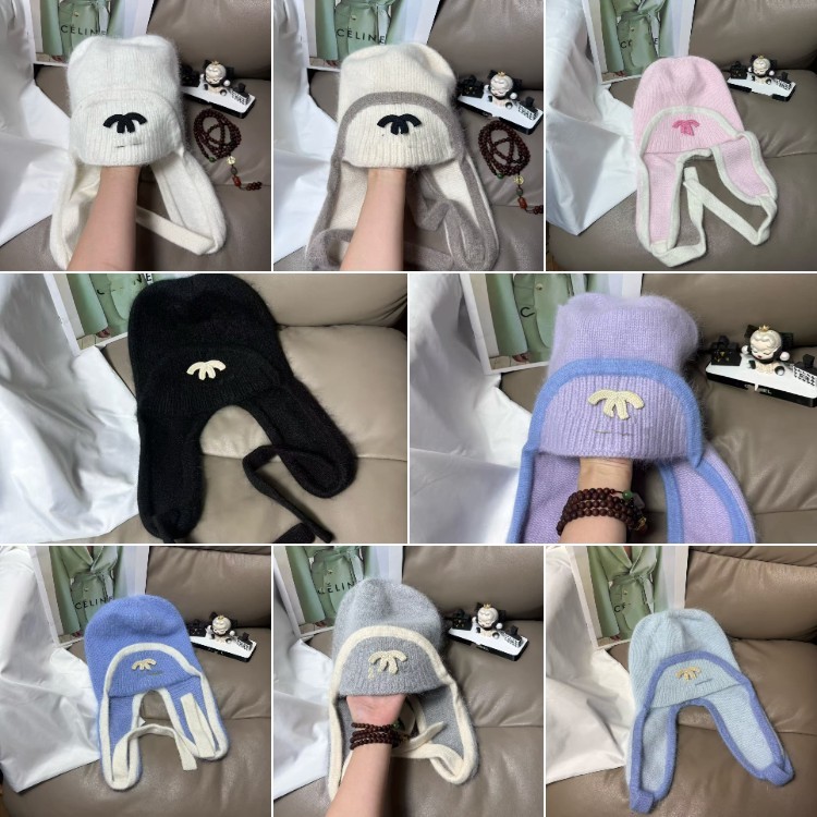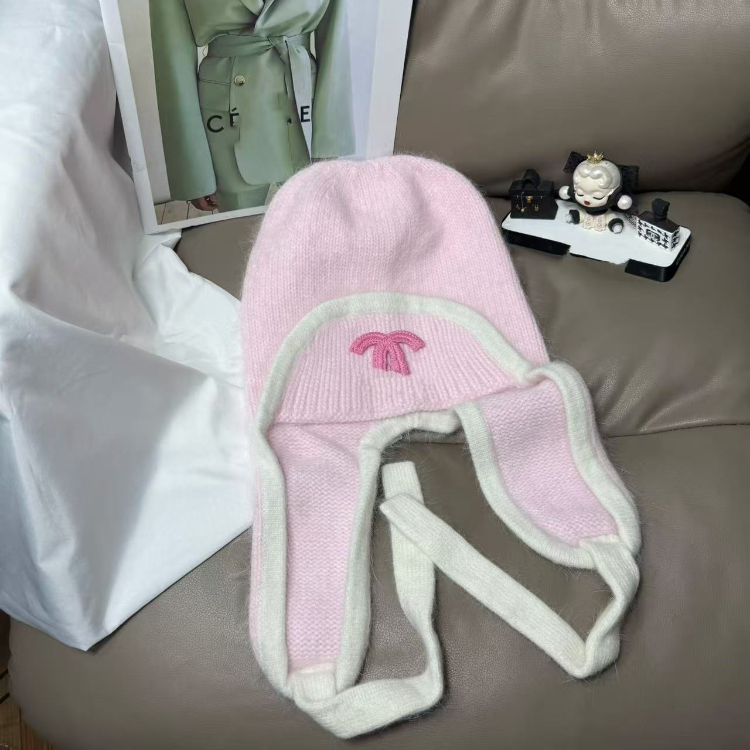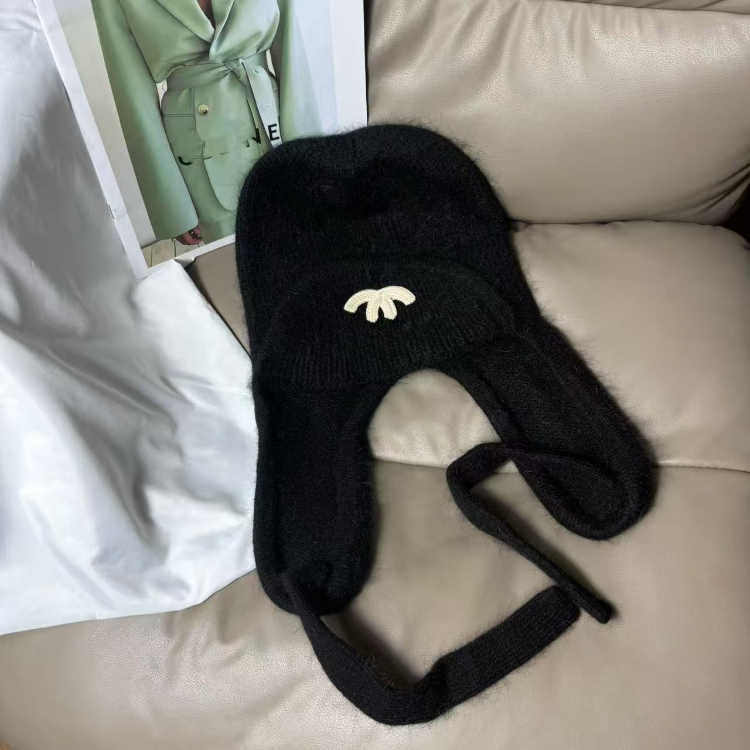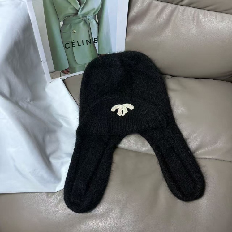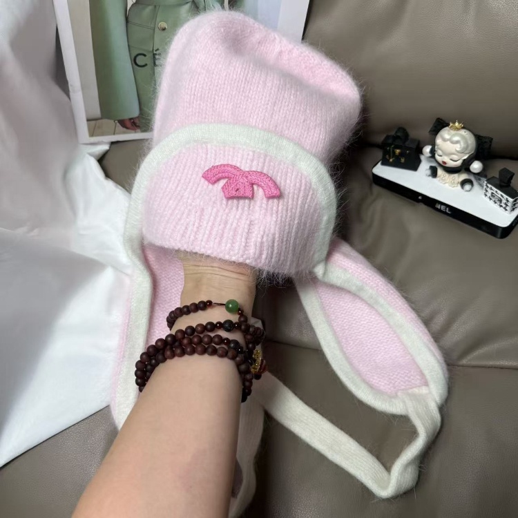 Chanel new rabbit fur warm knitted hat with ear flaps-5975