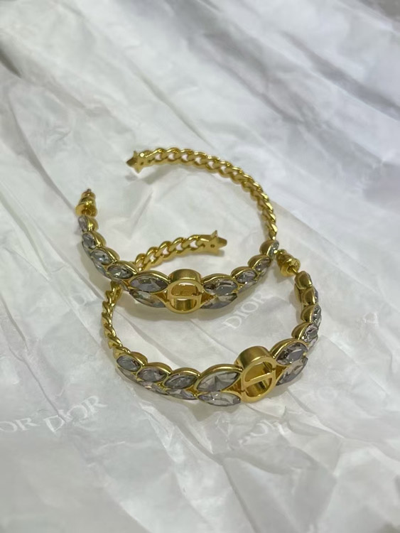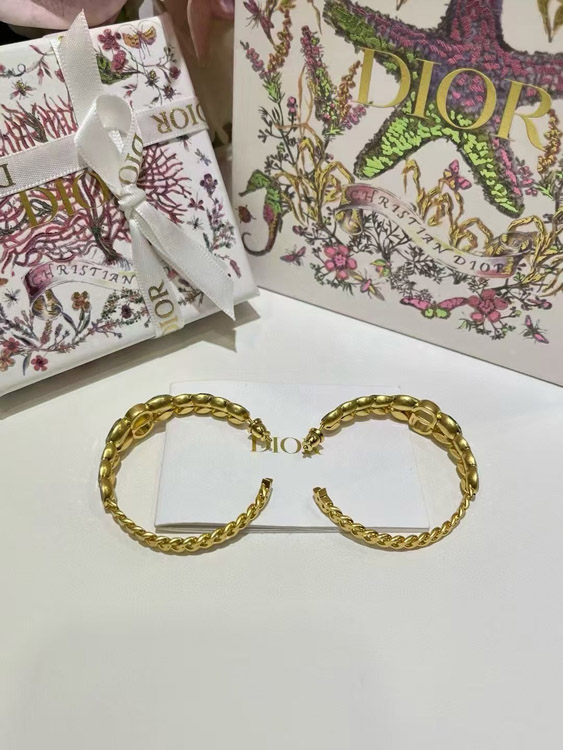Dior Gold Horse Eye Crystal Wheat Ear Chain Hoop Earrings-3703