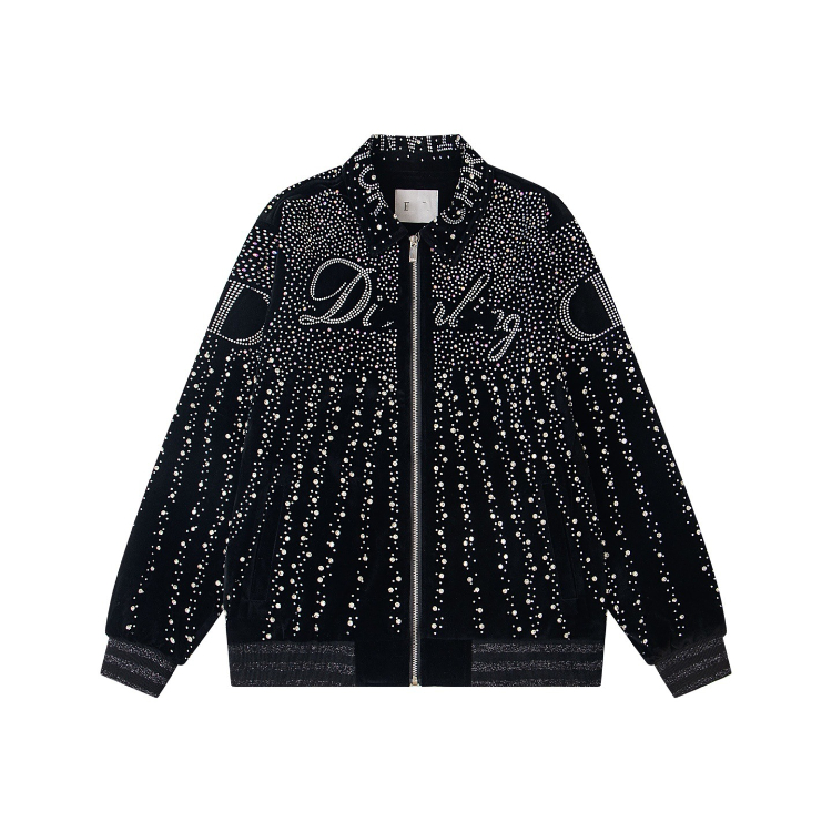 Dior new velvet baseball jacket with all-over hotfix rhinestone embellishments-5313