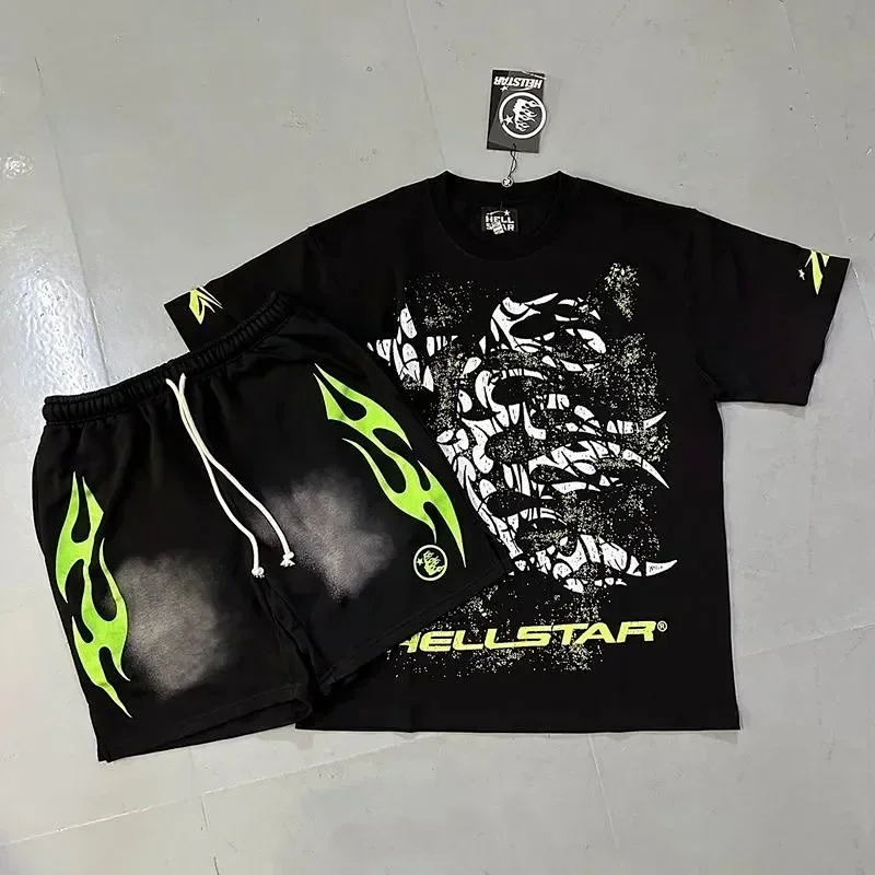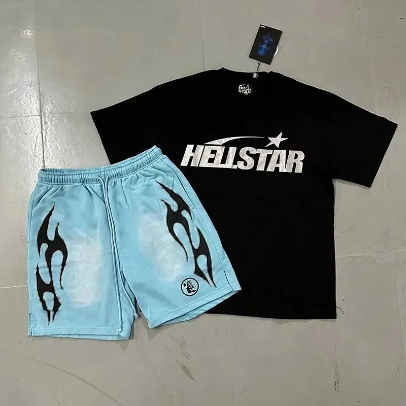 Home > Hellstar Letter Logo Printed Round Neck Short Sleeve T-Shirt Set-2790