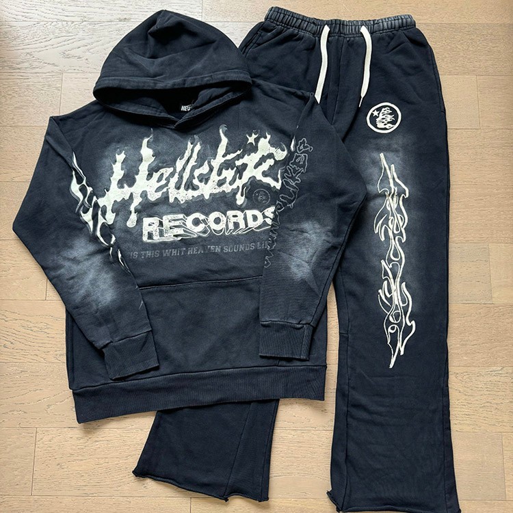 Hellstar Letter Print Long-Sleeve Hooded Sweatshirt and Sweatpants Set-4552