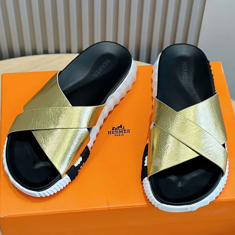Home > Hermes summer luxury leather flip flops Baita sandals-2334