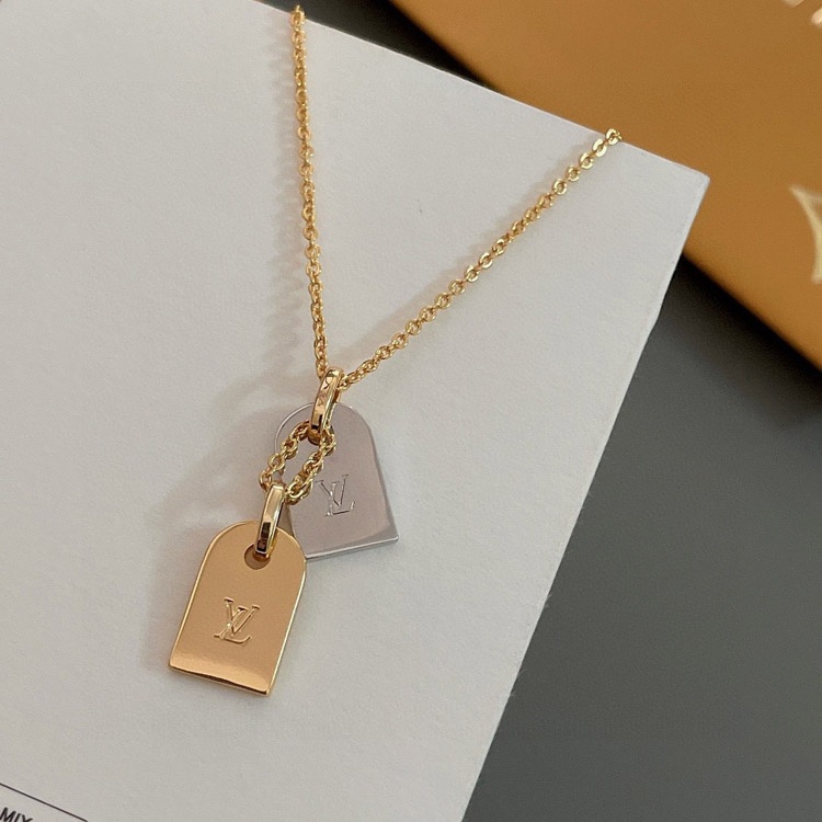 Louis Vuitton LV engraved letter flower gold and silver double shield necklace-3662