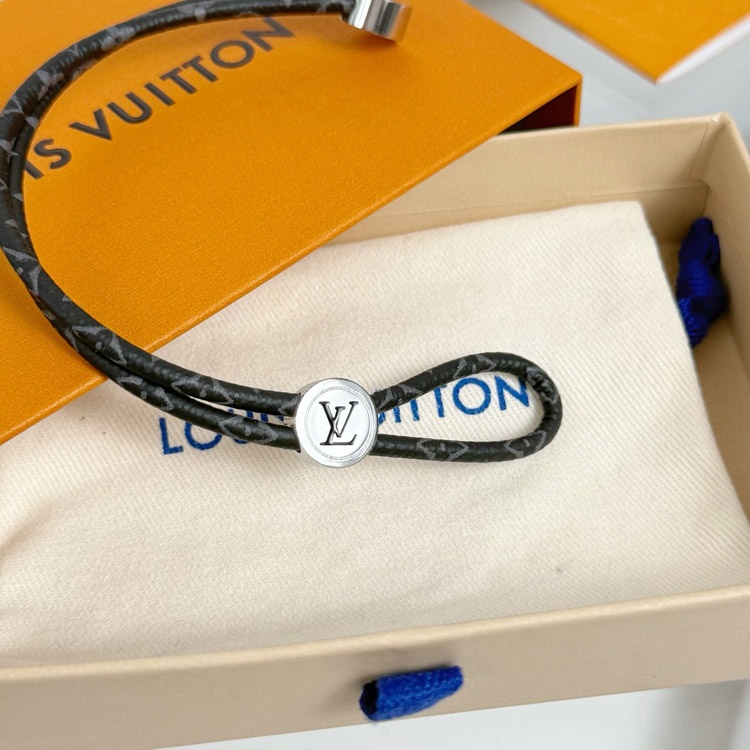 Louis Vuitton LV Letter Floral Black Flower Leather Buckle Bracelet-3640