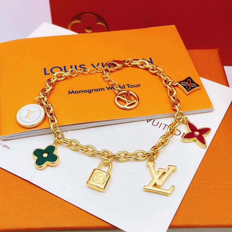 Louis Vuitton LV Letter Flower Lock Stone Color Drop Oil Bracelet-3874