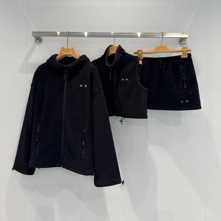 Miu Miu new collection set Embroidered logo fleece hooded zip-up jacket-5363