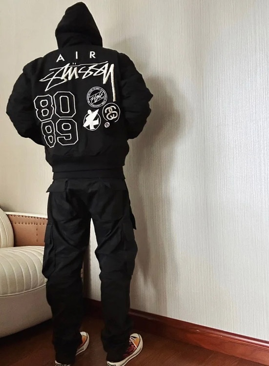 Home > Nike x Stussy Collaboration Logo Embroidered Reversible Bomber Jacket-4815
