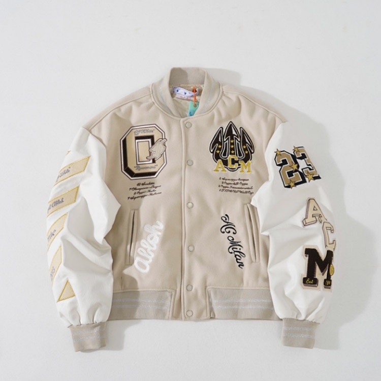 OFF-WHITE Embroidered Pattern Single-Breasted Baseball Jacket-4829