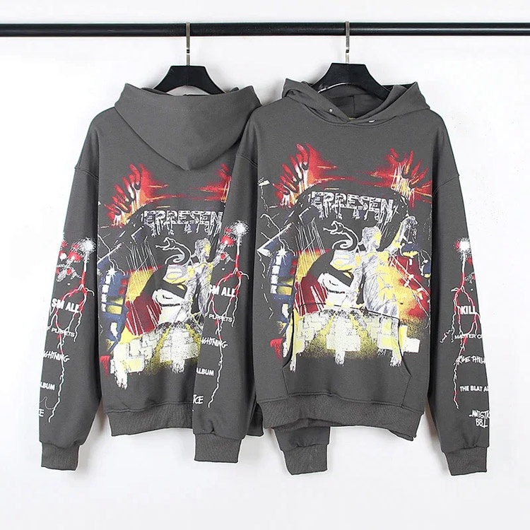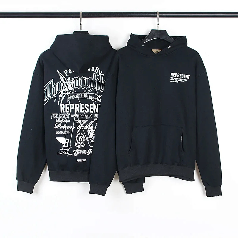 REPRESENT Printed Drawstring Hooded Jersey Sweatshirt-4497