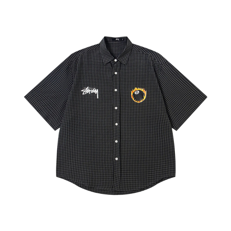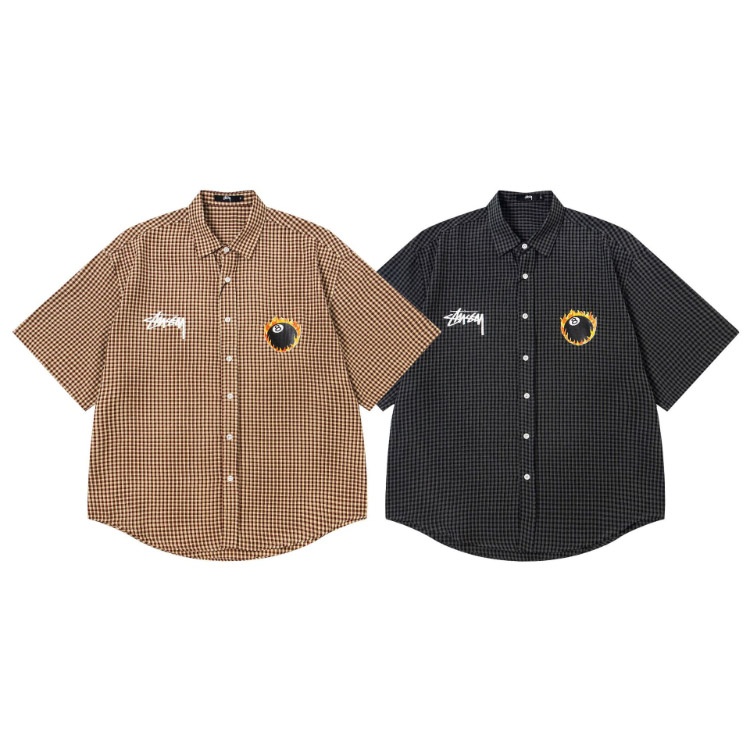 Stussy new loose-fitting plaid preppy style shirt-5276