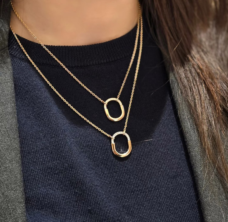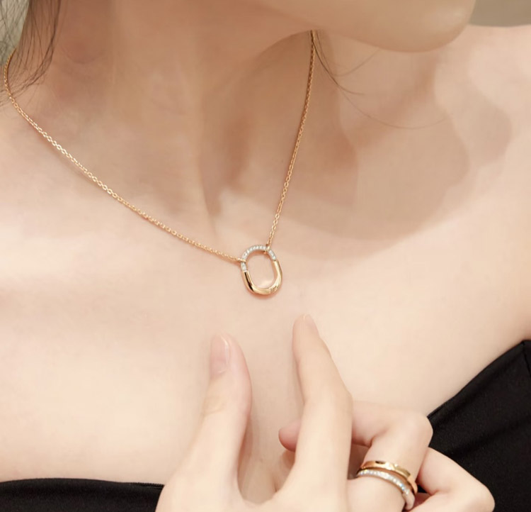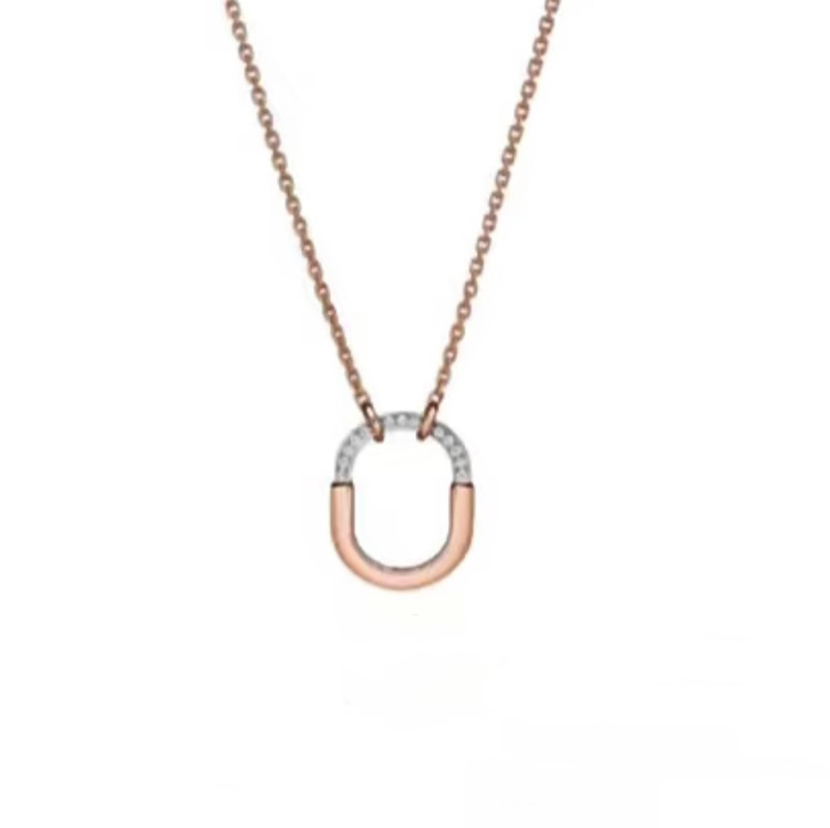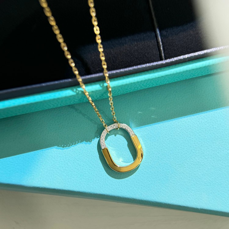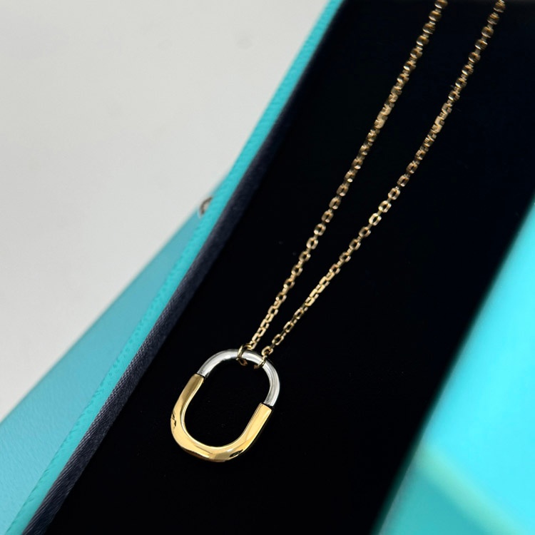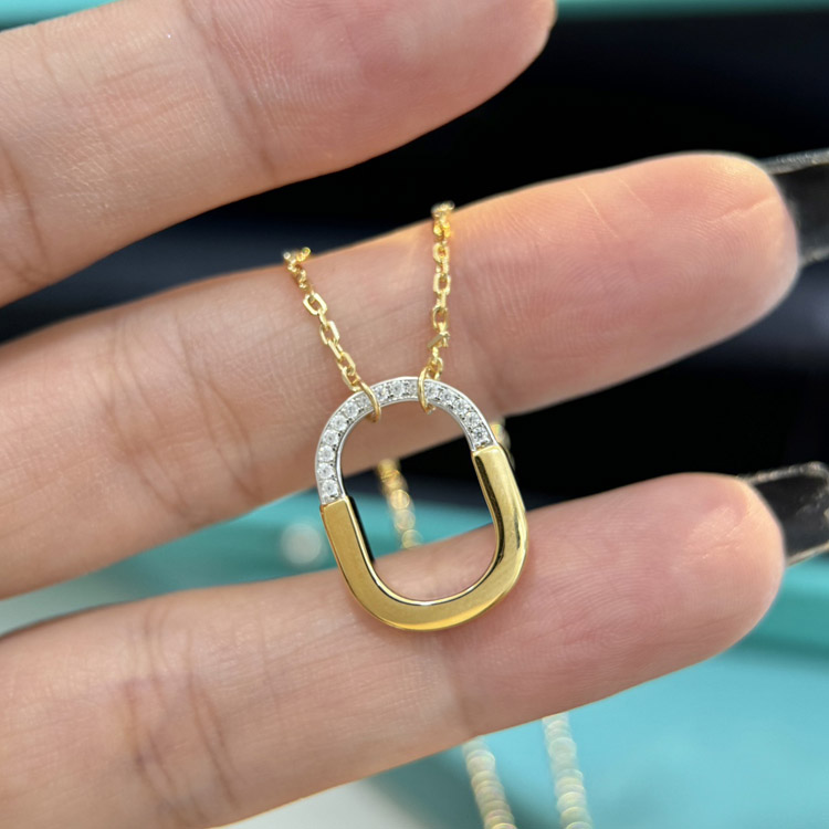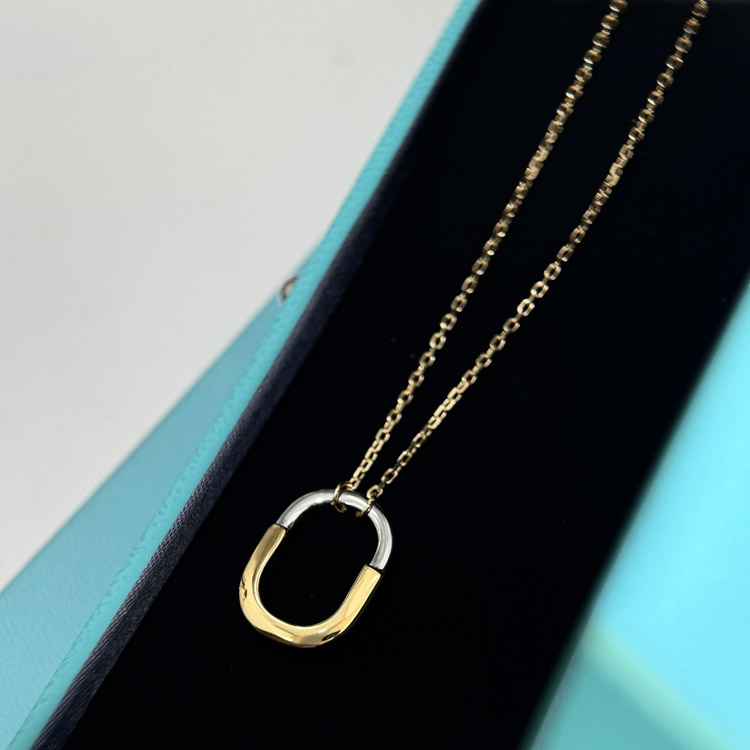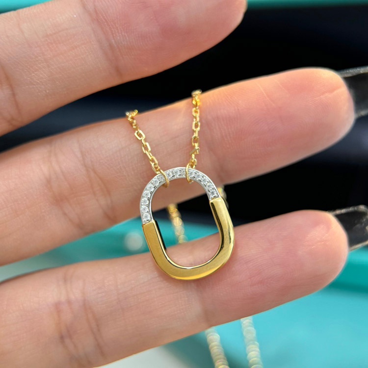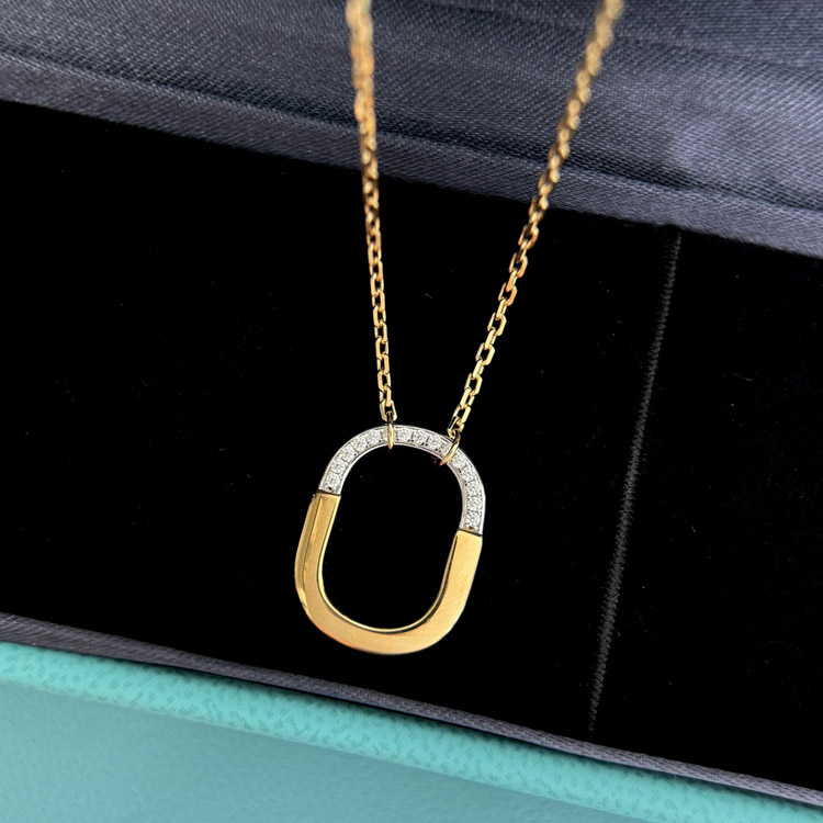 Home > Tiffany mini U-shaped lock half diamond two-tone necklace-3962