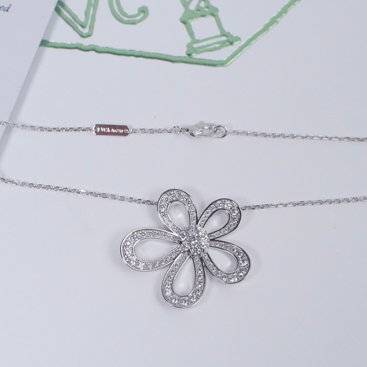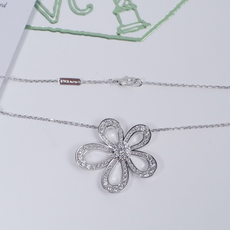 Van Cleef & Arpels platinum full diamond large flower sunflower necklace-3770