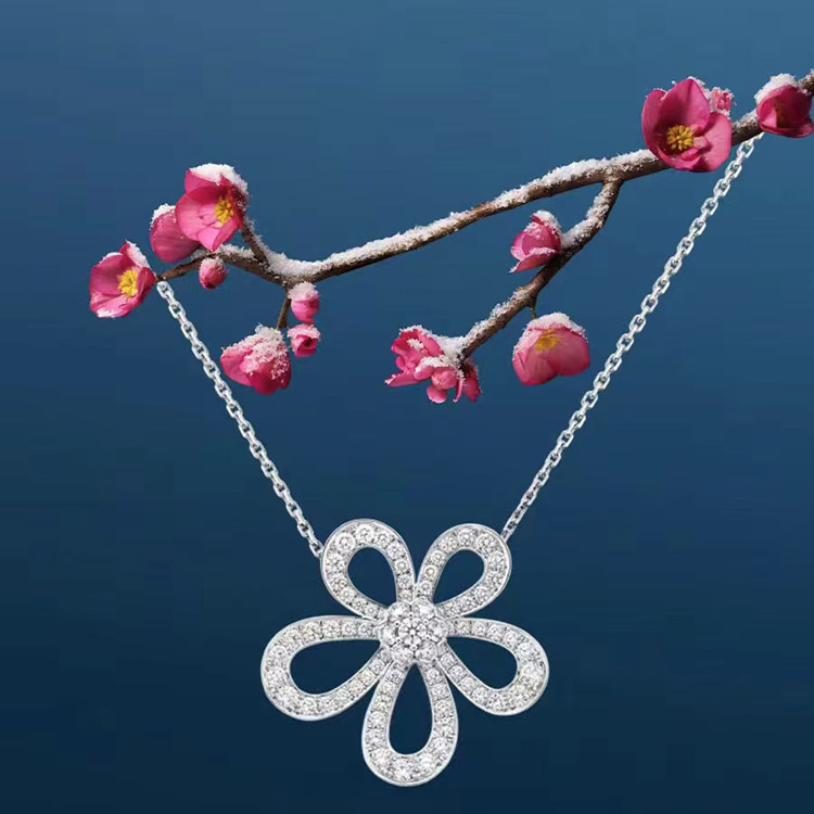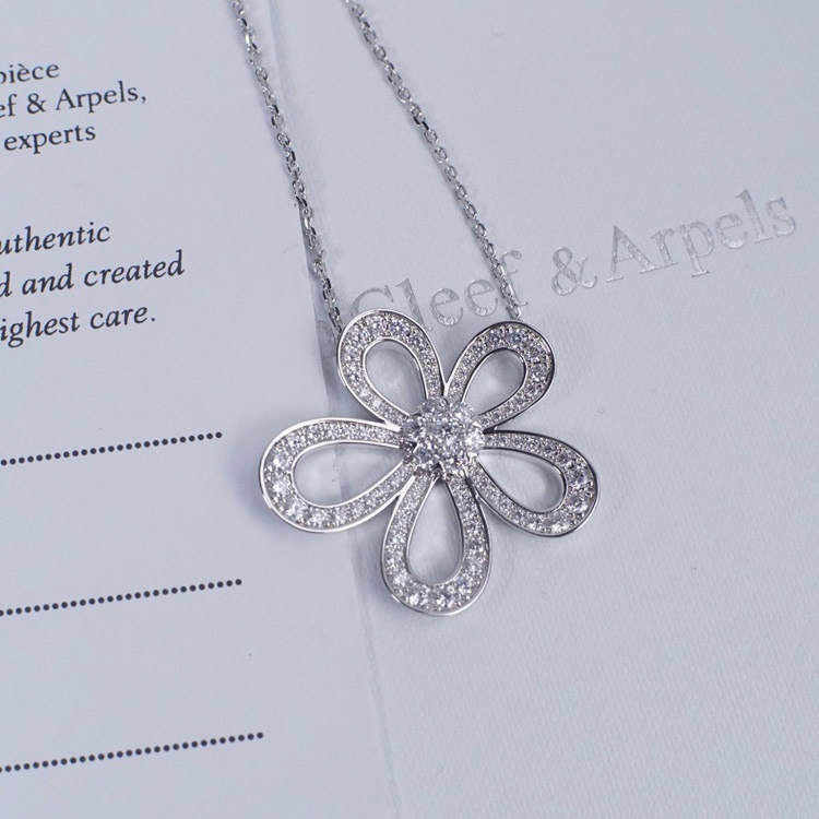 Home > Van Cleef & Arpels platinum full diamond large flower sunflower necklace-3770